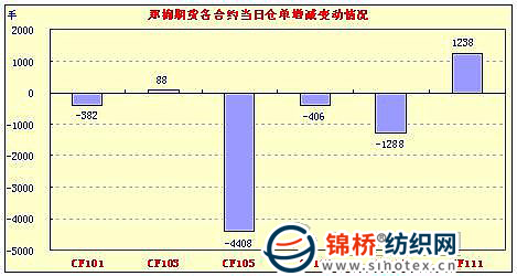12月20日,鄭棉CF1109合約高開,早盤慣性上沖后受到多頭平倉盤壓制回落,午間創(chuàng)日低,午后在多頭逢低買盤推動下迅速回升,日線形成高開陽線星,日內(nèi)成交量溫和放大,持倉量先增后減。CF1105合約日成交56632手,日減倉4408手,終盤持倉量64008手;CF1109合約日成交1370166手,日減倉1288,終盤持倉量239838手?;久媲闆r:市場觀望情緒濃厚。現(xiàn)貨市場方面行情依舊清淡,棉企受困成本制約,囤棉惜售情緒較濃,而紡廠收于庫存積壓資金壓力偏高制約,降價銷售比比皆是。另有信息員反饋,前期銷售較好的新疆棉近期銷售也不理想,而前期所謂的疆內(nèi)棉花汽運(yùn)補(bǔ)貼也并非直補(bǔ),而是減少入庫費(fèi)的方式落實(shí)。