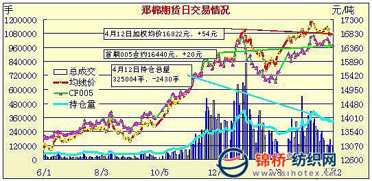 鄭棉期貨縮量整理減倉中幅收漲(4-12)