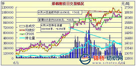 4月14日鄭州商品交易所棉花期貨成交及持倉(cāng)排名表