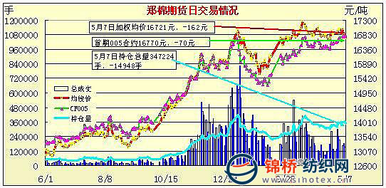 5月7日鄭州商品交易所棉花期貨成交及持倉(cāng)排名表