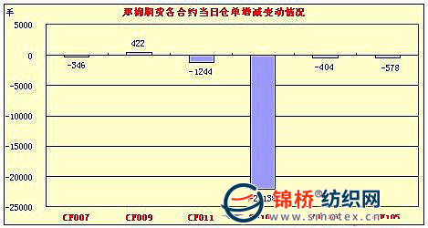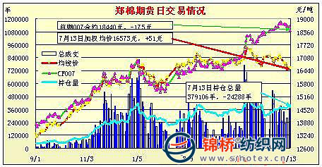 7月13日,鄭棉CF1009合約小幅高開,早盤整理后在空頭賣盤打壓下走低,此后低位盤整,日線形成陰線,日內(nèi)成交量放大,持倉量微增。鄭棉CF1101合約低開調(diào)整,隨后空頭回補支撐期價反彈盤整,尾盤空頭增倉打壓期價回落,短線止損盤亦壓制期價收于日低,日線形成低開小陰線,日內(nèi)成交量萎縮,持倉量繼續(xù)大幅減少。CF1009合約日成交65572手,日減倉422手,終盤持倉量101386手;CF1101合約日成交220406手,日減倉22138手,終盤持倉量201006手。基本面情況:現(xiàn)貨出現(xiàn)滯漲,顯現(xiàn)疲軟,有小幅下滑趨勢。主要原因應與近期將有可能拋儲及棉紗出現(xiàn)滯漲有關(guān)。據(jù)紡企反饋,近日紡織品市場淡季來臨,棉紗庫存有所增多,并且部分地區(qū)棉紗價格出現(xiàn)下滑。因此,紡織企業(yè)對原料采購進一步收緊,開始壓價,觀望情緒更濃。
