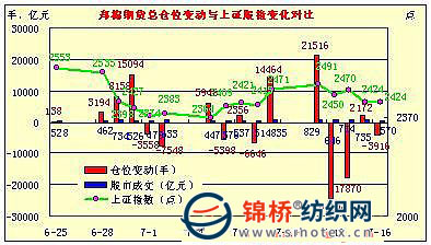 7月16日,鄭棉CF1009合約高開,盤中在多頭買盤的推動下走高,日線形成高開陽線,日內(nèi)成交量與持倉量同步增加。鄭棉CF1101合約高開盤整,隨后在空頭回補的支撐下波段走高,尾盤空頭集中回補買盤推動期價收高,日線形成陽線,日內(nèi)成交量變化不大,持倉量大幅減少。CF1009合約日成交46518手,日增倉6218手,終盤持倉量100446手;CF1101合約日成交1163854手,日減倉10134手,終盤持倉量184760手?;久媲闆r:今日股指與昨日基本持平,但成交量大幅萎縮,上證成交569.87億元,下降22.4%;深證成交490.07億元,下降11.2%。而今日鄭棉期貨成交22.6萬手,較昨日增加10%?,F(xiàn)貨價格連續(xù)小幅下滑,棉商銷售積極。新疆棉大量到內(nèi)地,但因下游紗錢銷售價格大幅下滑,紡企對棉價看跌情緒較濃,多是停止采購維持觀望,等待拋儲。