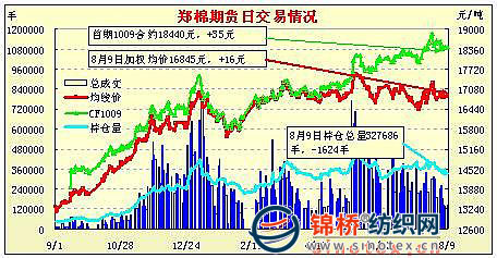 鄭棉期貨沖高回落減倉收低(8-9)