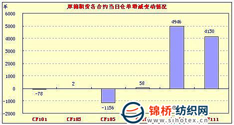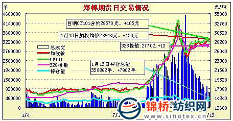 1月13日,鄭棉CF1109合約小幅高開(kāi),早盤下探后在多頭買盤推動(dòng)下反抽,隨后在平倉(cāng)盤打壓下波段下滑,日線形成小陰線,日內(nèi)成交量萎縮,持倉(cāng)量微增。CF1105合約日成交10144手,日減倉(cāng)1156手,終盤持倉(cāng)量47722手;CF1109合約日成交603808手,日增倉(cāng)4946手,終盤持倉(cāng)量242516手。基本面情況:現(xiàn)貨報(bào)價(jià)繼續(xù)小幅上漲,但是成交依舊不溫不火。據(jù)了解目前市場(chǎng)上想要新疆棉的不少,電話打了也不少,但是實(shí)質(zhì)成交的也少;今年內(nèi)地棉花質(zhì)量欠佳,高等級(jí)的棉花更是稀缺,所以企業(yè)咬價(jià)很緊。紡織廠也有想要買棉花的,但是價(jià)格壓的低成交的不多。另?yè)?jù)了解,12月份企業(yè)銷售進(jìn)度緩慢,庫(kù)存增加較大,多數(shù)棉企對(duì)春節(jié)后行情多堅(jiān)持看漲。