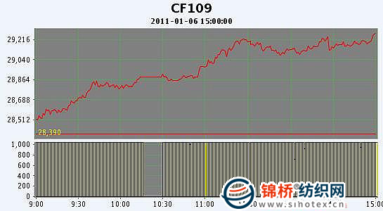 1月6日,鄭棉CF1109合約高開,盤中在多頭買盤推動下增倉上揚,午后高位震蕩,終盤收于日高,日線形成陽線,日內(nèi)成交量放大,持倉量增加。CF1105合約日成交20696手,日增倉1756手,終盤持倉量51942手;CF1109合約日成交825814手,日增倉56286手,終盤持倉量278712手。基本面情況:國內(nèi)棉花現(xiàn)貨價格穩(wěn)中上漲,市場成交依舊清淡,紡織廠價格低,軋花廠不肯送,看好后市出貨意愿并不強烈。昨日,山東地區(qū)一大型棉紡企業(yè)正式公布了皮棉收購價格,其中公定3級為27600元,4級為27300元,不過據(jù)信息員反饋廠家有壓價收購的趨勢。