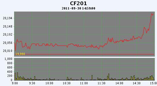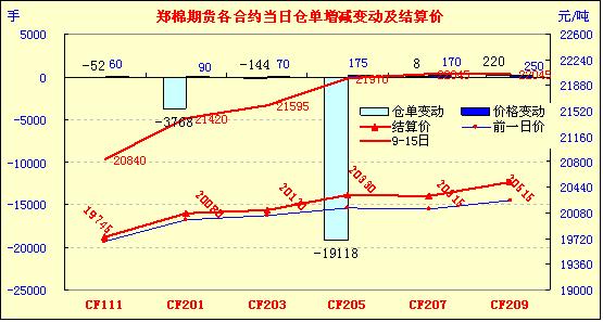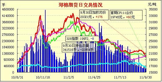 9月30日,鄭棉CF1205合約高開,早盤橫向整理,午后在空頭集中回補(bǔ)的支撐下走高,日線形成高開陽線,日內(nèi)成交量萎縮,持倉量大幅減少。CF1201合約日成交10136手,日減倉3768手,終盤持倉量63342手;CF1205合約日成交176938手,日減倉19118手,終盤持倉量228134手?;久媲闆r:現(xiàn)貨價(jià)格繼續(xù)下跌,部分地區(qū)籽棉收購價(jià)格也有回落,收購價(jià)格下跌顯然收購數(shù)量也有減少,棉農(nóng)交售的意愿也并不強(qiáng)烈。開秤收購的企業(yè)在極力控制成本,均采取了快加工快銷售的策略,但是近兩日電子盤的下跌還是給市場企業(yè)心里帶來一定的沖擊,同時(shí)近期各地棉籽價(jià)格維持弱勢加大企業(yè)收購的壓力。紡織廠方面,沒有出現(xiàn)十一小長假的大規(guī)模補(bǔ)庫,雖然他們庫存很低但是在行情一路下跌的情況下采購還是很謹(jǐn)慎的。但是據(jù)了解,目前紡織廠的用棉比例在增加,主要訂單要求棉花的比例在增加。