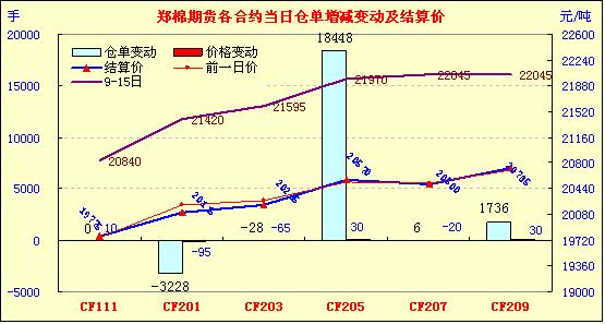 10月12日,放量增倉(cāng),漲跌互現(xiàn),資金流入明顯。當(dāng)日成交24.41萬(wàn)手,增15.19萬(wàn)手,成交金額251億元,較前兩日增加156億元。當(dāng)日鄭棉CF1205合約小幅高開(kāi),早盤(pán)下探后在多頭買(mǎi)盤(pán)與空頭回補(bǔ)支撐下反抽,午間多頭集中買(mǎi)盤(pán)推動(dòng)期價(jià)加速上沖創(chuàng)日高,午后震蕩整理,日線(xiàn)形成長(zhǎng)下影線(xiàn)的陽(yáng)線(xiàn)星,日內(nèi)成交量放大,持倉(cāng)量增加。CF1201合約日成交12446手,日減倉(cāng)3228手,終盤(pán)持倉(cāng)量58926手;CF1205合約日成交223406手,日增倉(cāng)18448手,終盤(pán)持倉(cāng)量235946手?;久媲闆r:近日河北衡水地區(qū)籽棉采摘如火如荼,多數(shù)棉田進(jìn)度過(guò)半。但籽棉價(jià)格呈現(xiàn)走弱趨勢(shì),10月10日,當(dāng)?shù)囟鄶?shù)產(chǎn)棉縣籽棉價(jià)格小跌。3級(jí)籽棉報(bào)價(jià)4.05-4.10元/斤(衣分38%-39%,回潮率15%以下),弱3級(jí)3.95-4.00元/斤(同上),4級(jí)3.80-3.85元/斤(同上),整體價(jià)格水平較前日跌0.02-0.03元/斤。當(dāng)?shù)囟鄶?shù)棉農(nóng)隨摘隨銷(xiāo),當(dāng)?shù)刈衙奘袌?chǎng)較為火爆。加工企業(yè)由于選擇的余地較大,在收購(gòu)過(guò)程中對(duì)質(zhì)量把關(guān)較嚴(yán)。一般企業(yè)日收10-15萬(wàn)斤,個(gè)別大型企業(yè)能達(dá)到20萬(wàn)斤以上。皮棉價(jià)格保持平穩(wěn),當(dāng)天3級(jí)皮棉20000元/噸(提貨、毛重、帶票,下同),弱3級(jí)19500元/噸,4級(jí)19000元/噸,與前一日持平。當(dāng)?shù)丶庸て髽I(yè)一般也是隨加工隨銷(xiāo)售,皮棉市場(chǎng)也是購(gòu)銷(xiāo)兩旺。當(dāng)日棉籽價(jià)和1.19-1.20元/斤,與前一日持平,市場(chǎng)購(gòu)銷(xiāo)較為活躍。