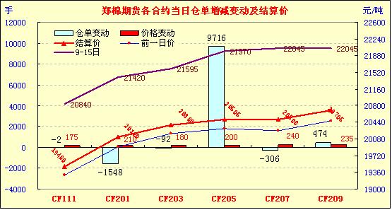 鄭棉主力 5 月合約今天早盤高開高走后回落,隨后保持震蕩態(tài)勢(shì),最后收于 20445 點(diǎn),較上一交易日收高 150 點(diǎn)。今日鄭棉交易量增加,有 26.1 萬(wàn)手,增加了 18.5 萬(wàn)手??偝謧}(cāng)量為 34.1 萬(wàn)手,較上一交易日增加了 8242 手。今日主力合約外盤 48%內(nèi)盤 52%,空頭稍占優(yōu)勢(shì)。