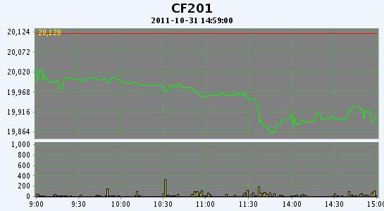 10月31日,鄭棉CF1205合約平開,盤中在多頭主動平倉盤的打壓下走低,午后重心下移,尾盤受到短線空頭回補支撐反彈,日線陰線,日內(nèi)成交量萎縮,持倉量下滑。CF1201合約日成交3764手,日減倉1688手,終盤持倉量37392手;CF1205合約日成交103012手,日減倉9018手,終盤持倉量232520手?;久媲闆r:目前, 河北河間的籽棉采摘工作進入了尾聲,多數(shù)棉田采摘完畢,當?shù)孛揶r(nóng)預(yù)計畝產(chǎn)量在400-450元/斤,部分棉農(nóng)還未銷售,留存籽棉為“一棵花”。由于當?shù)刂裁蕹杀旧蠞q幅度較大,棉農(nóng)植棉收益預(yù)期下降。據(jù)了解當?shù)孛揶r(nóng)植棉成本為550元/噸(不包括人工以及土地承包費用),較去年上漲15%以上。而籽棉收購價格較去年下降較多,因此植棉收入較棉農(nóng)預(yù)期降低。當前籽棉收購價格保持了穩(wěn)定態(tài)勢,10月31日當?shù)?級籽棉收購價格在4.25元/斤(衣分39%,回潮率13%以內(nèi)),4級籽棉價格在4.00元/斤(衣分38%,回潮率13%以內(nèi)),與上周價格持平。 據(jù)了解當前的棉花收購價格比較穩(wěn)定,交儲有一定的利潤空間,400型棉花企業(yè)日收購數(shù)量在5萬斤以上。由于紡織企業(yè)采購不積極,400型棉花企業(yè)均打算交儲,市場上皮棉購銷清淡。