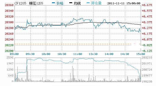 主力CF205合約當(dāng)日分時(shí)交易走勢(shì)