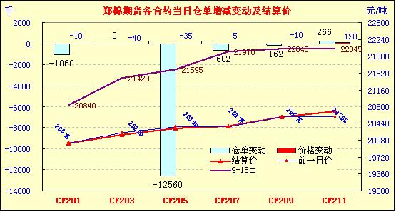 11月15日,鄭棉CF1205合約低開,盤中橫向整理,日線形成低開陽線星,日內(nèi)成交量萎縮,持倉量大幅減少。CF1201合約日成交1456手,日減倉1060手,終盤持倉量25934手;CF1205合約日成交43374手,日增倉12560手,終盤持倉量208584手。基本面情況:棉籽價(jià)格跌幅加大,日均價(jià)已經(jīng)跌破1元大關(guān),達(dá)到0.99元/斤,給加工企業(yè)在出貨方面的壓力更加蒙上一層陰影。籽棉收購價(jià)格弱勢(shì)維穩(wěn),皮棉現(xiàn)貨市場(chǎng)銷售依舊疲軟,而當(dāng)前交儲(chǔ)利潤空間較大,一些400型加工廠紛紛加大力度收購籽棉,一心交儲(chǔ)。部分地區(qū)加工廠收購的籽棉仍堆放在廠里不敢加工,主要原因是收購質(zhì)量下降,怕加工出來的棉花達(dá)不到交儲(chǔ)條件,又怕自己銷不出去,心理十分矛盾。紡織方面,由于國內(nèi)紗線市場(chǎng)行情疲軟不堪,市場(chǎng)報(bào)價(jià)大幅下跌,企業(yè)庫存明顯上升,庫存壓力顯現(xiàn),所以當(dāng)前紗線企業(yè)很少采購原料,以消化庫存為主。