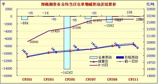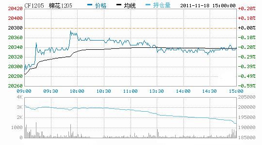 11月18日,鄭棉CF1205合約低開,早盤在空頭逢低回補的支撐下反抽,隨后多頭平倉盤壓制期價回落,日線形成低開小陽線,日內(nèi)成交量變化不大,持倉量減少。CF1201合約日成交4824手,日減倉884手,終盤持倉量22388手;CF1205合約日成交46358手,日減倉14262手,終盤持倉量192226手?;久媲闆r:降雨覆蓋北方大部地區(qū),對籽棉交售造成了不利影響,尤其是黃河流域部分地區(qū),天氣因素再加上惜售心理較強,市場成交清淡。雖然籽棉收購價格維持穩(wěn)定,但受到降雨的影響,回潮增加,加工企業(yè)收購較為謹(jǐn)慎,以免加工完的皮棉不夠交儲條件。目前下游紡織廠以及棉紗經(jīng)銷商對棉紗依然是小批量謹(jǐn)慎地采購,所以紗廠出貨艱難,不斷下調(diào)價格以贏取有限的市場。棉副方面,昨日受到棉油提價的支撐,今日各產(chǎn)品普遍企穩(wěn),棉籽價格也穩(wěn)中看漲。