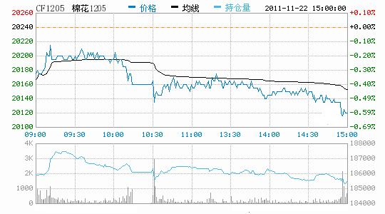 11月22日,鄭棉CF1205合約低開,早盤反彈后在平倉盤壓制下盤跌,尾盤收弱,日線形成低開小陰線星,日內(nèi)成交量變化不大,持倉量略有減少。CF1201合約日成交1676手,日減倉1456手,終盤持倉量194906手;CF1205合約日成交48976手,日減倉314手,終盤持倉量185508手。基本面情況:維持穩(wěn)定了一周的棉籽價(jià)格受棉油、粕小幅的下調(diào)影響再現(xiàn)跌勢,雖然日均價(jià)較上周末只跌了0.01元/斤,但仍然使得棉企看漲預(yù)期再受打擊。籽棉價(jià)格前期經(jīng)歷了下跌過程,目前維持穩(wěn)定狀態(tài),部分棉農(nóng)開始接受當(dāng)前的籽棉收購價(jià)格,交售積極性較前期相比略有上升;但在黃河流域習(xí)慣性囤棉地區(qū),惜售心依然較強(qiáng),只待價(jià)格回漲后再作考慮。雨過之后,部分地區(qū)棉企加大力度收購加工籽棉,以便能加快交儲(chǔ)進(jìn)度,盡快獲得利潤;現(xiàn)貨市場狀態(tài)表現(xiàn)低迷,成交寥寥無幾。紗線市場交投氣氛依然較弱,但跌價(jià)趨勢有所放緩,主要是因?yàn)椴糠?a href='http://www.qdhqly.cn/Yarn/' title='錦橋紡織網(wǎng)紗線頻道' target='_blank'>紗線已跌至成本線以下,企業(yè)虧損較多。