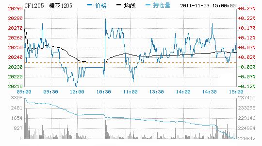 11月3日,鄭棉CF1205合約小幅低開,盤中窄幅震蕩,日線形成低開陰線星,日內(nèi)成交量萎縮,持倉量大幅減少。CF1201合約日成交2182手,日減倉1190手,終盤持倉量34898手;CF1205合約日成交72620手,日減倉18396手,終盤持倉量220842手。基本面情況:今日股市繼續(xù)放量大漲,滬、深指數(shù)分別收于2508.09和10624.12點,上漲4.8點和42.37點,成交金額飚升至1363.06億元和1358.08億元的正常水平。而今日期棉僅成交79.38億元,較昨日下降66億元,且大低于今年日均水平。近日,北疆多雨雪、內(nèi)地棉區(qū)陰雨大霧,光照溫度均不佳,不利于新棉晾曬,質(zhì)量有所下降。從昨日的交儲情況看,新疆地區(qū)交儲接近全部,企業(yè)交儲活躍。內(nèi)地企業(yè)也在積極加工,摩拳擦掌準(zhǔn)備交儲。交儲活躍,日收儲量也隨之?dāng)U大,2日推出的計劃收購量達(dá)到六萬噸以上。隨著現(xiàn)貨市場持續(xù)低迷,籽棉收購價格繼續(xù)下調(diào),山東地區(qū)四級棉已跌破4元,為 3.99/斤;三級棉均價4.13/斤,較前日繼續(xù)小幅小調(diào)。棉副市場方面,棉籽、棉油、棉粕、棉短絨銷售報價均整體下降,甚至有部分地區(qū)棉籽價格下調(diào)0.05元/斤。