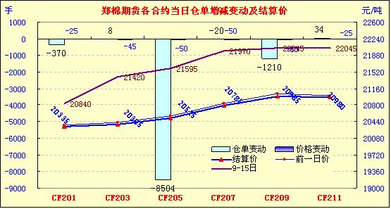 12月10日,鄭棉主要合約低開,CF1205合約早盤在多頭平倉打壓下走低,午后空頭回補支撐期價反彈整理,日線形成陰線星,日內(nèi)成交縮量,持倉量減少;CF1209合約窄幅整理,日經(jīng)形成1/2上影線的小陽線,日成交量萎縮,持倉量減少。CF1205合約日成交38136手,日減倉8504手,終盤持倉量175300手;CF1209合約日成交8782手,日減倉1210手,終盤持倉量35434手。