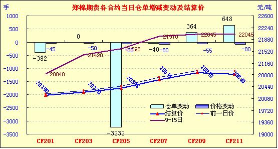 12月15日,鄭棉主要合約低開,盤中在空頭回補(bǔ)的支撐下橫盤,午后一度反彈,隨后在平倉盤壓制下走低,尾盤在多頭平倉打壓下回落,CF1205合約日線形成低開陰線星,CF1209合約形成低開陽線,日成交量放大,持倉量近減遠(yuǎn)增。CF1205合約日成交44282手,日減倉3232手,終盤持倉量161070手;CF1209合約日成交11458手,日減倉364手,終盤持倉量36876手?;久媲闆r:疆阿圖什的天氣晴好,氣溫維持在1-11攝氏度,對籽棉收購和籽棉加工非常有利,不過,據(jù)氣象預(yù)報報道,從16日開始,氣溫天氣開始轉(zhuǎn)陰,氣溫也隨之下降,更為嚴(yán)重的是從17日開始,又有小雪降臨,氣溫迅速下降至零下2-零下10攝氏度,降雪低溫,空氣濕度大,給籽棉加工帶來一定影響,尤其是對沒有安裝籽棉烘干機(jī)的部分企業(yè)對加工出的皮棉水分控制艱難,據(jù)當(dāng)?shù)氐哪?a href='http://www.qdhqly.cn/News/Channel/?CID=31' title='更多棉花信息' target='_blank'>棉花企業(yè)負(fù)責(zé)人講,由于天公不作美,籽棉加工春節(jié)前難以結(jié)束。截止今日,當(dāng)?shù)氐淖衙奘召弮r格比較穩(wěn)定,價格為4.12元/斤(衣分40%、水分13%、雜質(zhì)1.8%) 另外,據(jù)悉,12月16日,當(dāng)?shù)氐拿拮褍r格又報漲了0.03元/斤,價格為0.83元/斤,棉油、棉粕價格依舊,分別為6700元/噸、1200元/噸。