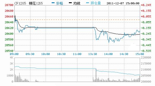 主力CF205合約當(dāng)日分時(shí)交易走勢(shì)
