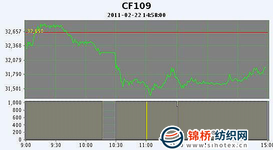 2月22日,鄭棉CF1109合約平開,早盤在多頭買盤推動(dòng)下沖高,盤中高位換手后受到空頭打壓迅速跳水,午間創(chuàng)日低,午后在多頭買盤與空頭短線回補(bǔ)盤支撐下反彈,日線形成陰線星,日內(nèi)成交量放大,持倉(cāng)少量先增后減。CF1109合約日成交1544218手,日減倉(cāng)7274手,終盤持倉(cāng)量277268手;CF1111合約日成交58976手,日減倉(cāng)4340手,終盤持倉(cāng)量47192手?;久媲闆r:現(xiàn)貨商大多還在看多所以銷售意愿不是很強(qiáng),大部分大中型紡織廠還在消耗春節(jié)前采購(gòu)庫(kù)存,所以進(jìn)貨量不大。正月十五過后,在冀魯豫三省軋花廠幾乎全面開機(jī),但是收購(gòu)量仍是不大,仍有多部分棉花留滯在棉農(nóng)或棉販?zhǔn)种小?/p>