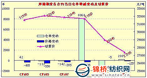 2月23日,鄭棉CF1109合約低開,早盤寬幅震蕩后在多頭買盤推動(dòng)下沖高,盤中高位成交量放大,午后受到空頭打壓回落,尾盤在空頭短線回補(bǔ)盤支撐下反彈,日線形成低開陽(yáng)線,日內(nèi)成交量萎縮,持倉(cāng)少量增加。CF1109合約日成交1323868手,日增倉(cāng)8068手,終盤持倉(cāng)量285336手;CF1111合約日成交45886手,日減倉(cāng)1438手,終盤持倉(cāng)量45754手?;久媲闆r:現(xiàn)貨銷售略有松動(dòng),市場(chǎng)觀望情緒增多,紗線價(jià)格節(jié)節(jié)攀高但實(shí)質(zhì)有價(jià)無(wú)市,由于節(jié)前部分紡織廠以及經(jīng)銷商手中囤積了一些低價(jià)棉紗,在當(dāng)前這個(gè)高價(jià)位上,成交情況不是十分紅火,有價(jià)無(wú)市的情況確實(shí)存在。