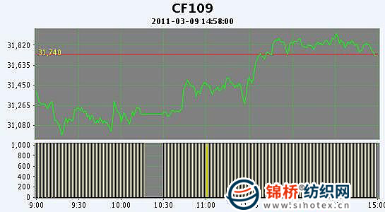 3月9日,鄭棉CF1109合約平開,早盤調整下行后在多頭買盤推動下反彈震蕩,午間放量增倉拉高,午后重心上移震蕩,尾盤在多頭集中平倉盤壓制下調整,日線形成陽線,日內成交量變化不大,持倉量增加。CF1109合約日成交1842040手,日增倉17448手,終盤持倉量389360手;CF1111合約日成交29992手,日增倉1270手,終盤持倉量42918手。基本面情況:現(xiàn)貨上棉商就開始賣棉花,他們手中棉花多是高等級棉花,目前港口到港的外棉很多,補充了近期市場上的資源。大紡廠采購地產棉僅僅是為了配棉,小紡廠買新疆棉花也是為了與滌綸配。兩會期間不斷有宏觀方面的新聞傳出,對于后期中國貨幣政策的闡述,或多或少的給市場帶來利空氣氛。