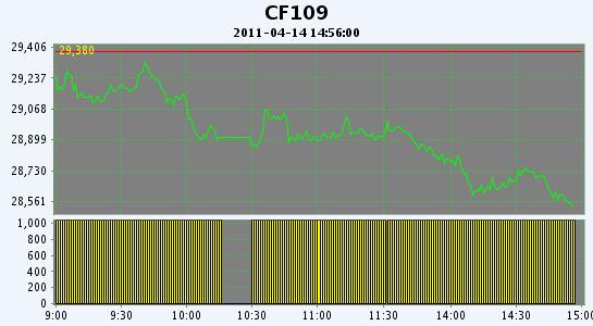 主力CF109合約當(dāng)日交易走勢(shì)