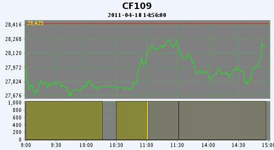 主力CF109合約當(dāng)日交易走勢