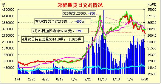 鄭棉期貨低開破位減倉續(xù)跌(4-26)