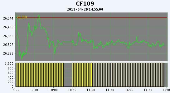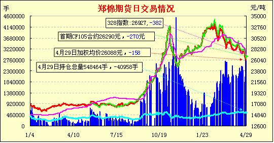 4月29日,鄭棉CF1109合約小幅高開,早盤一度在多頭買盤推動(dòng)下沖高,隨后多頭主動(dòng)平倉盤壓制期價(jià)回落,此后窄幅整理,日線形成小陰線,日內(nèi)成交量萎縮,持倉量先增后減。CF1109合約日成交1861894手,日減倉37008手,終盤持倉量377496手;CF1201合約日成交219088手,日減倉3456手,終盤持倉量127722手?;久媲闆r:昨日山東魏橋又下調(diào)其皮棉采購價(jià)1000元,截止今日本月已累計(jì)降價(jià)3000元;受美聯(lián)儲(chǔ)最新發(fā)言顯示,將繼續(xù)實(shí)施EQ2政策,國際電子盤跌停,外棉報(bào)價(jià)大幅下跌,市場恐慌心理進(jìn)一步加重。據(jù)了解江蘇、浙江地區(qū)出現(xiàn)了淡季電荒,鋼廠出現(xiàn)了限電情況,紡織廠尚無具體體現(xiàn),現(xiàn)在一些銷售好的紗線是混紡和80-100的高支紗,普梳紗銷售慘淡。手中有新疆棉或者是三級(jí)棉的棉企和棉商心態(tài)略好,但是大多數(shù)棉商手中都有大量四級(jí)棉,企業(yè)害怕紡織廠倒閉,除非是現(xiàn)款結(jié)算或是承兌匯票,不然很難愿意銷售。
