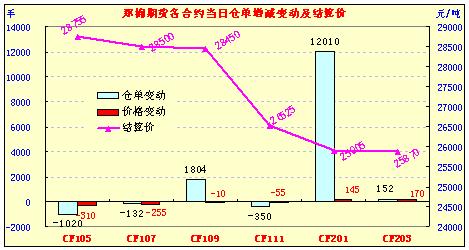 4月6日,鄭棉CF1109合約早盤探低后在多頭承接買盤推動下回升,午間在空頭回補支撐下上沖,午后高位震蕩,日線形成陽線,日內(nèi)成交量小幅增加,持倉量變化不大。CF1109合約日成交1800168手,日增倉1804手,終盤持倉量385868手;CF1111合約日成交7890手,日減倉350手,終盤持倉量26338手?;久媲闆r:現(xiàn)貨到廠報價繼續(xù)下探,由于山東魏橋紡織下調(diào)了其皮棉采購價,市場信息再度受挫,除去低等級棉報價繼續(xù)下調(diào)外,高等級棉價格也在次下降,市場成交幾無。近日,純棉產(chǎn)品上下游均處觀望、停滯、壓價狀態(tài)中,紗線市場全面萎縮,庫存不斷增加,多數(shù)紡廠降價促銷以搶奪市場,紗價持續(xù)下跌。預計國內(nèi)小長假三天現(xiàn)貨市場變化不大,市場低迷氣氛依然存在。