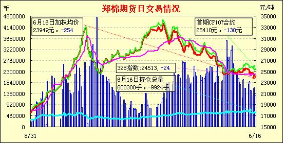 鄭棉期貨縮量減倉低開大跌(6-16)