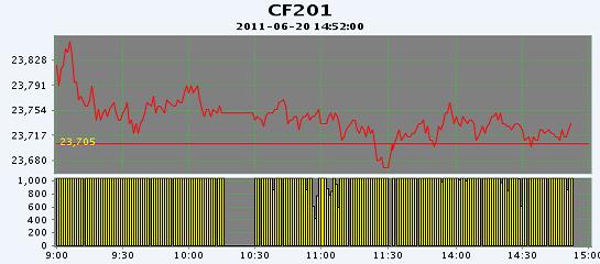 主力CF201合約當(dāng)日交易走勢