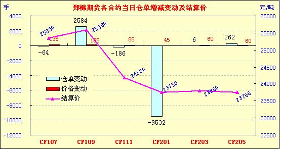 6月20日,鄭棉主要合約高開,CF1109合約早盤沖高后在空頭賣盤打壓下盤跌回落,午后創(chuàng)日低,隨后在多頭低位承接買盤和空頭回補支撐下回升,日線形成高開星線,日內(nèi)成交量萎縮,持倉量增加;CF1201合約沖高回落,尾盤在空頭集中回補支撐下反彈,日線形成小陰線,日內(nèi)成交量萎縮,持倉量減少。CF1109合約日成交73534手,日增倉2584手,終盤持倉量227822手;CF1201合約日成交845648手,日減倉9532手,終盤持倉量317068手。 相關(guān)市場情況:上周五NYBOT棉花期貨受空頭回補提振收高。基本面情況:河北滄州降下中雨,初顯旱情的棉花得到澆灌,旱情得到緩解,土地墑情適宜,棉苗長勢較快。目前,滄州地區(qū)春播棉花已長至35-40公分,普遍現(xiàn)鈴,棉枝交接基本罩嚴地面。當(dāng)?shù)孛揶r(nóng)介紹,今年災(zāi)害天氣較少,棉苗生長基本沒有受到影響,目前情況較去年同期要好,預(yù)估畝產(chǎn)量、籽棉質(zhì)量都會有提高。周末兩天,皮棉、籽棉價格均小幅下跌,市場成交無量。20日,三級皮棉報價24600元/噸(提貨、毛重、帶票,下同),弱三級24300元/噸,四級23800元/噸,較昨日跌100元/噸。目前,紡織企業(yè)提貨量非常小,一般為20-30噸,極少見到100噸以上的大批成交。主要原因仍然是紡織成品庫存大,企業(yè)擔(dān)心風(fēng)險。籽棉價格小跌,當(dāng)天,弱三級4.65元/斤(衣分37%,回潮率10%),四級4.60元/斤(同上),弱四級4.55元/斤(同上),均較昨日跌2-3分錢。眼下,由于農(nóng)民幫于小麥收割,籽棉交售基本停止。