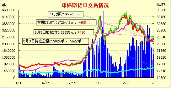 6月3日,鄭棉CF1109合約高開,早盤在多頭買盤推動(dòng)下沖高,盤中橫向震蕩,尾盤在空頭集中回補(bǔ)的支撐下收于日高,日線形成中陽線,日內(nèi)成交量變化萎縮,持倉量減少;鄭棉CF1201合約高開盤整,午后受到多頭買盤推動(dòng)下沖高,尾盤收強(qiáng),日線形成陽線,日內(nèi)成交量放大,持倉量增加。CF1109合約日成交524758手,日減倉3812手,終盤持倉量524758手;CF1201合約日成交1063264手,日增倉6962手,終盤持倉量267552手。 基本面情況:大部分地區(qū)現(xiàn)貨報(bào)價(jià)滯漲,個(gè)別報(bào)價(jià)繼續(xù)小幅上調(diào),成交方面變化不大。從安徽地區(qū)市場了解到,目前當(dāng)?shù)剀埢◤S庫存百噸左右的,千噸左右的都有,棉花地產(chǎn)的、新疆的都有。從安徽池州地區(qū)了解到,近期紡織廠采購的需求是馬克隆值高的棉花,所以地產(chǎn)棉依舊很難動(dòng)銷,新疆棉有少量銷售,紡織廠采購量依舊不大,都是一點(diǎn)一點(diǎn)的在采購。據(jù)了解當(dāng)?shù)剞r(nóng)發(fā)行實(shí)行了黑名單制度,如果企業(yè)沒有按時(shí)歸還貸款,即將計(jì)入黑名單,企業(yè)還貸壓力依舊較大。當(dāng)?shù)睾登橐廊粐?yán)重,棉農(nóng)都期盼老天能多下雨,如果6月當(dāng)?shù)厝詫⑹歉珊堤鞖鉃橹鞯脑?,棉花后期生長難言樂觀。
