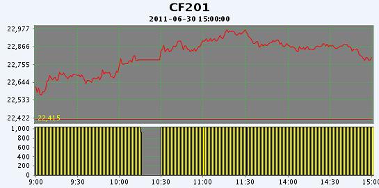 6月30日,鄭棉CF1109合約平開增倉上行,盤中高位震蕩減倉整理,日線形成小陽線,日內(nèi)成交量較前一日減少,持倉量下降;CF1201合約高開后增倉回穩(wěn),隨后空頭回補盤支撐期價走高,午后高位減倉回落,日線形成陽線,主要合約成交量萎縮,持倉少量減少。CF1109合約日成交337454手,日減倉16564手,終盤持倉量165874手;CF1201合約日成交1272632手,日減倉36682手,終盤持倉量350228手。基本面情況:現(xiàn)貨成交極少,有棉商開始恐慌性的拋售手中的棉花,低等級棉無人問津,高等級棉銷售尚可價格稍穩(wěn)。期貨市場的倉單棉現(xiàn)貨接手的不多,電子盤連續(xù)兩日大幅下探,市場上多頭退去。紡織廠依舊不好過,一些想拿貨的廠不能給現(xiàn)金,而想賣的棉花企業(yè)都是要拿著錢去還農(nóng)發(fā)行的貸款,所以成交極少。有大型紡織廠也出現(xiàn)了放假的情況,近一段時間以來紡織廠去庫存化的情況并不理想,目前紡織廠庫存天數(shù)相當于金融危機時候的庫存。