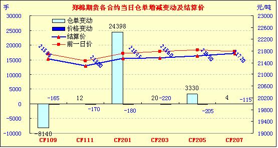 7月15日,鄭棉主要合約低開,CF1109合約受空頭回補(bǔ)支撐反彈整理,日線形成低開小陽(yáng)線,日內(nèi)成交量萎縮,持倉(cāng)量減少;CF1201合約在多頭買盤支撐下回升震蕩,盤中增倉(cāng)增量,尾盤受多頭集中平倉(cāng)盤打壓調(diào)整,日線形成小陽(yáng)線,日內(nèi)成交量變化不大,持倉(cāng)量增加。CF1109合約日成交56022手,日減倉(cāng)8140手,終盤持倉(cāng)量74430手;CF1201合約日成交1816684手,日增倉(cāng)24398手,終盤持倉(cāng)量5723802手?;久媲闆r:現(xiàn)貨銷售依舊很清淡,市場(chǎng)成交不多,對(duì)于年度后期這短時(shí)間大家都不看好了,另由于大型紡織廠的頻繁大幅調(diào)價(jià),一些地區(qū)的棉花企業(yè)報(bào)價(jià)也大幅下調(diào)。紡織廠經(jīng)營(yíng)策略改變,一方面根據(jù)訂單生產(chǎn),棉花庫(kù)存十分的低,另一方面轉(zhuǎn)型做別的產(chǎn)品。目前來(lái)看全國(guó)棉區(qū)天氣情況較好,部分地區(qū)棉花生長(zhǎng)好于去年。