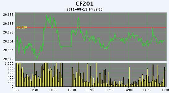 主力CF201合約當(dāng)日交易走勢