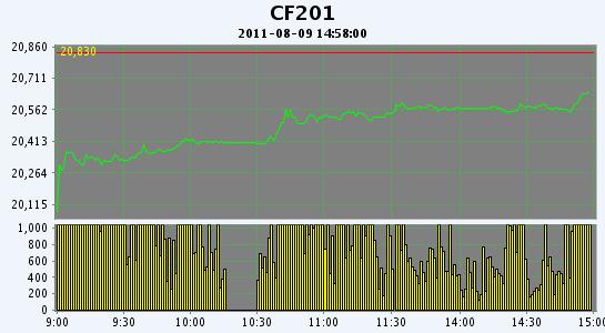 主力CF201合約當(dāng)日交易走勢(shì)