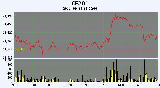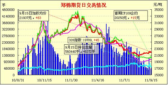 9月15日,鄭棉主要合約小幅高開,主要合約早盤向下調(diào)整震蕩,午后在多頭集中買盤推動下沖高,隨后在平倉盤打壓下回落,日線形成星線,日內(nèi)成交量放大,持倉量近減遠增。CF1201合約日成交31570手,日減倉4606手,終盤持倉量121260手;CF1205合約日成交500810手,日增倉12806手,終盤持倉量404168手?;久媲闆r:市場高等級棉稀缺,由于軋花廠收購不積極,皮棉現(xiàn)貨出現(xiàn)暫時性的銷售緊俏。內(nèi)地湖北棉產(chǎn)區(qū)籽棉已經(jīng)大量成熟,但當?shù)剀埢◤S積極收購的較少。目前價格好4級籽棉4.1-4.2元/斤,棉籽1.3元/斤,衣分是37.5%--38%, 加工費在800元左右,成本基本在18600元/噸左右,提貨價格為19000元/噸毛重開票。當前由于紡廠零星采購,新加工的皮棉基本不能形成量。 目前新棉市場基本上是一個軋花廠與棉農(nóng)僵持的階段。而湖南大型的400軋花廠,經(jīng)歷去年棉價過山車似的波折,軋花廠的形勢大不樂觀。 新疆的南疆地區(qū),軋花廠也在無精打采地收籽棉,收購價格8.8元/公斤, 衣分39.5%,棉籽1.15元/斤。據(jù)了解,當前國際的棉商都開始瞄準了中國市場,預計在11月中旬,可以簽訂裝運大量的外棉。