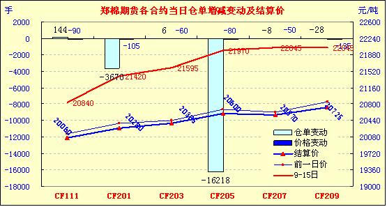 9月27日,鄭棉期貨低開下滑,弱市收跌,七連跌,繼續(xù)大幅減倉。今日成交均價20578元,較昨日平均跌78元。其中首期CF111合約20060元,跌90元;CF201合約20170元,跌105元;主力CF205合約20600元,跌80元。成交繼續(xù)萎縮,總成交23.12萬手,減14.5萬手,成交金額237.86億元,減38.8%。倉單減少1.98萬手,持倉總量37.77萬手,為今年一月中旬來的最低量。