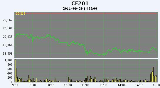 9月29日,鄭棉CF1205合約低開(kāi),早盤(pán)在多頭平倉(cāng)和空頭賣(mài)盤(pán)壓制下盤(pán)跌,午前在空頭集中增倉(cāng)打壓下走低,午后空頭回補(bǔ)支撐期價(jià)反彈,日線(xiàn)形成低開(kāi)小陰線(xiàn),日內(nèi)成交量放大,持倉(cāng)量變化不大。CF1201合約日成交18500手,日減倉(cāng)4844手,終盤(pán)持倉(cāng)量67110手;CF1205合約日成交251602手,日減倉(cāng)820手,終盤(pán)持倉(cāng)量247252手。 相關(guān)市場(chǎng)情況:周三ICE棉花期貨受投機(jī)賣(mài)盤(pán)打壓收低?;久媲闆r:近日山東、安徽、天津等地均現(xiàn)陰雨或陣雨天氣,天氣不佳對(duì)棉花質(zhì)量產(chǎn)生影響,同時(shí)也阻礙了新棉上市的步伐,企業(yè)收購(gòu)價(jià)格隨著電子盤(pán)的下跌進(jìn)一步調(diào)整,棉農(nóng)交售情況一般,仍是相持。紡織方面信息員反饋近期外銷(xiāo)依舊不是很理想,內(nèi)銷(xiāo)還是可以的,紡織廠(chǎng)用棉量增加,但是價(jià)格下跌,觀(guān)望心理也比較多,采購(gòu)并不十分積極。 目前新疆南疆籽棉收購(gòu)價(jià)格普遍在8.8元/公斤,庫(kù)爾勒最高在9.2元/公斤,疆內(nèi)三級(jí)棉毛重20400元/噸,現(xiàn)貨現(xiàn)款。