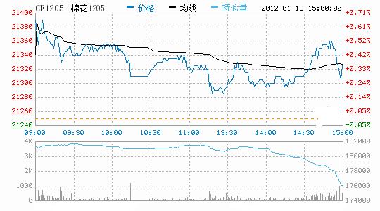 1月18日,鄭棉主要合約高開,早盤在多頭平倉與空頭賣盤壓制下回落,午后一度反彈,尾盤遠期合約受空頭壓制下滑,并帶動近月合約減倉收弱,日線形成高開小陽線星,日內成交量變化不大,持倉量近減遠增。CF1205合約日成交38782手,日減倉5044手,終盤持倉量176182手;CF1209合約日成交25170手,日增倉1166手,終盤持倉量86130手?;久媲闆r:籽棉收購價格穩(wěn)中有降,3級棉日均價略跌0.01元,4級棉也下跌0.02元。據了解截至2011年12月末,農發(fā)行累放棉花收購貸款662億元,同比增加285億元,增幅75.6%;支持企業(yè)收購皮棉6539萬擔,同比增加2811萬擔,增幅75.5%。棉副方面,受棉油、粕需求放緩和價格下調的影響,今日棉籽價格也開始松動,部分地區(qū)小幅回調,日均價較前幾日下調0.01元/斤。下游方面,整體行情平穩(wěn),雖然春節(jié)臨近,一些商家也陸續(xù)關門歇業(yè),但價格仍然維穩(wěn)。