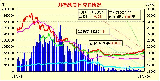 1月30日,鄭棉主要合約微幅低開,早盤在多頭逢低買盤推動(dòng)下走高,隨后區(qū)間震蕩,午后略有調(diào)整,日線形成陽線,主要合約成交量放大,持倉量增加。CF1205合約日成交55182手,日增倉7880手,終盤持倉量174800手;CF1209合約日成交28270手,日增倉5302手,終盤持倉量92726手。基本面情況:今天是正月初八,正當(dāng)節(jié)日氣氛還彌漫在河北大地時(shí),已有部分大型棉企開門上班。企業(yè)上班的第一天,員工到廠后組批春節(jié)前加工出來的皮棉、分揀規(guī)整春節(jié)前收購(gòu)的籽棉、調(diào)試檢修棉花加工機(jī)械,為棉花加工做前期準(zhǔn)備工作,企業(yè)計(jì)劃明天開機(jī)繼續(xù)加工節(jié)前收購(gòu)的棉花(個(gè)別地區(qū)小廠正月初六已經(jīng)開機(jī)加工棉花)。企業(yè)預(yù)計(jì)籽棉收購(gòu)工作將在正月十五左右開始,有的棉企計(jì)劃直接走村串戶收購(gòu)。目前,威縣、東光棉農(nóng)手中約有60%左右的籽棉還沒有交售。