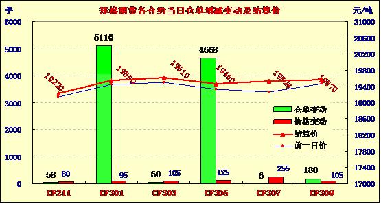 今日鄭棉高開震蕩上行,持倉量增加。CF1301開盤價19470元/噸,最高價19595元/噸,最低價19460噸,收盤價19570元/噸,漲130元/噸;日成交量為81860手;持倉量增加,日增倉5110手至212032手。CF1305收于19490元/噸,漲155元/噸;日成交量為25822手;持倉量增4668至117052手。2013 年糧食、棉花進口關(guān)稅配額量為:小麥(2470,15.00,0.61%)963.6 萬噸,國營貿(mào)易比例90%;玉米(2316,-9.00,-0.39%)720 萬噸,國營貿(mào)易比例60%;大米532萬噸(其中:長粒米266萬噸,中短粒米266萬噸),國營貿(mào)易比例50%;棉花89.4萬噸,國營貿(mào)易比例33%。10月8日,計劃收儲100800噸,實際成交77390噸,成交比例76.8%。其中,新疆庫點計劃收儲56000噸,實際成交55520噸,成交比例99.1%;內(nèi)地庫計劃收儲44800噸,實際成交21870噸,成交率48.8%。截止今日2012年度棉花臨時收儲累計成交459870噸,新疆累計成交390240噸,內(nèi)地累計成交69630噸。下游需求還是疲軟,“旺季不旺”根本性的制約著棉花價格.