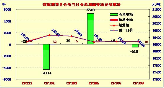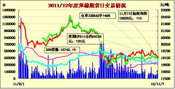 11月7日,鄭棉主要合約平開,盤中區(qū)間震蕩,走勢近強(qiáng)遠(yuǎn)弱,近月日線形成陽線,遠(yuǎn)月形成陰線星,日內(nèi)遠(yuǎn)期合約成交量萎縮,持倉量近減遠(yuǎn)增。CF1301合約日成交14906手,日減倉4314手,終盤持倉量145706手;CF1305合約日成交52252手,日增倉5310手,終盤持倉量173962手?;久媲闆r:由于棉農(nóng)惜售及棉企謹(jǐn)慎收購,導(dǎo)致部分地區(qū)收購市場一直維持不溫不火的狀態(tài)中,日收購量基本維持在幾萬斤左右,多的也只有20萬斤左右;但在另一部分地區(qū),大廠仍然采取和小廠合作的方式,拓寬渠道收購籽棉。棉副方面,籽棉價(jià)格顯現(xiàn)抗跌性,但市場上棉油、粕價(jià)格普遍出現(xiàn)下調(diào),棉短絨、棉殼需求也不理想,行情也是穩(wěn)中有跌。