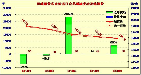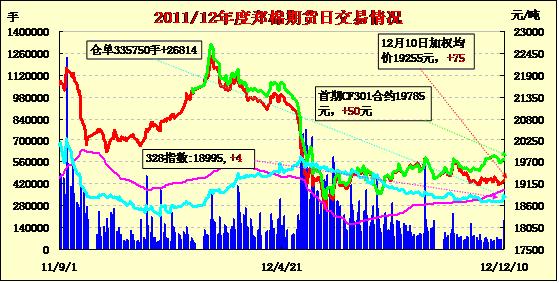 12月10日,鄭棉CF1305合約平開,早盤橫向盤整,午后在多頭買盤推動下沖高,日線形成陽線,日內(nèi)成交量放大,持倉量增加。CF1301合約日成交11732手,日減倉7276手,終盤持倉量72182手;CF1305合約日成交157526手,日增倉28320手,終盤持倉量212964手。 基本面情況:由于棉花行業(yè)的不景氣,今年棉企收購速度明顯快于去年,交儲成交量大幅高于去年同期,結(jié)果導(dǎo)致部分倉庫庫容比較緊張,日計劃收儲量有所萎縮,使部分地區(qū)棉企交儲難度增加。棉副方面,在外圍市場上漲的帶動下,棉油、粕行情再次走強(qiáng),棉短絨、棉殼價格表現(xiàn)暫穩(wěn),產(chǎn)品整體表現(xiàn)回暖對棉籽價格形成支撐。下游方面,今日棉紗銷售不暢,氣流紡報價繼續(xù)小幅回落,其它規(guī)格暫穩(wěn)。