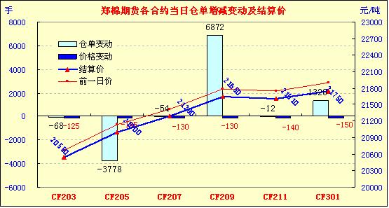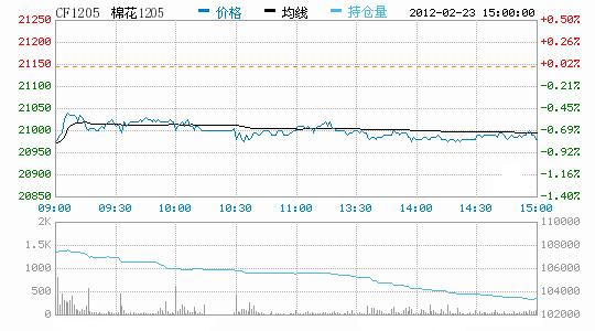 2月23日,紐期大跌,鄭棉主要合約低開,近期合約在多頭平倉壓制下走弱,遠月受空頭賣盤壓制反彈回落,日線形成低開小陰線,主要合約成交量萎縮,持倉量近減遠增。CF1205合約日成交15726手,日減倉3778手,終盤持倉量103452手;CF1209合約日成交92156手,日增倉6872手,終盤持倉量239314手?;久媲闆r:籽棉收購價格停止下跌,暫時保持穩(wěn)定。因為現(xiàn)貨價格仍然在小漲,棉企看好后市心理仍濃,加工出來的棉花并不急于銷售,靜觀市場行情變化,所以近期銷售進度較前期有所變緩。據(jù)天氣預報,長江流域再次迎來了降雨天氣,這對收購加工較為不利,有些企業(yè)不得已停止了籽棉收購工作;新疆的西部和北部則有降雪出現(xiàn),當?shù)赜行┢髽I(yè)甚至停工來清掃廠子里的積雪。棉副方面,各產品整體成交放緩,但棉籽價格仍然保持穩(wěn)定。