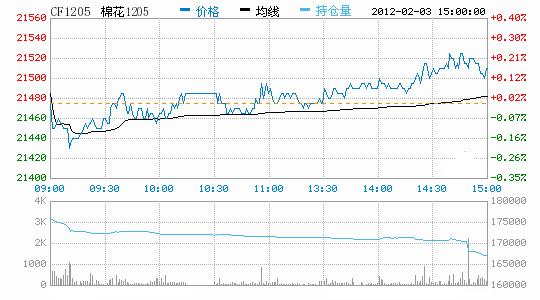 2月3日,鄭棉主要合約平開,遠(yuǎn)期合約在多頭買盤推動下走高,午后增倉震蕩,重心上移,近期合約受到空頭持續(xù)回補買盤支撐走強,日線形成小陽線,主要合約成交量放大,持倉量近減遠(yuǎn)增。CF1205合約日成交36646手,日減倉8158手,終盤持倉量167372手;CF1209合約日成交51772手,日增倉13844手,終盤持倉量138958手。基本面情況:籽棉收購價格小幅上漲,三級棉日均價4.02元/斤,四級棉3.94元/斤,均較前日上漲0.01元。由于近日電子盤價格占有優(yōu)勢,再加上收儲政策托底,使部分棉企看漲后市行情,籽棉收購價格也隨之略有提高。但由于棉花價格與前一年相比大幅回落,加之植棉成本上升、收益減少、用工過多,棉農(nóng)植棉積極性受挫。據(jù)中國棉花協(xié)會調(diào)查,按照被調(diào)查棉農(nóng)植棉意向加權(quán)平均計算,全國棉農(nóng)平均種植意向減少10.5%。棉副方面,行情以穩(wěn)為主,多數(shù)油廠未開工。下游方面,整體報價穩(wěn)定,局部有小幅上調(diào),但基本有價無市,實際訂單依然不多。