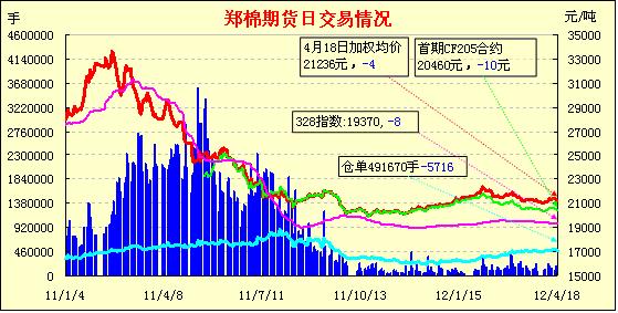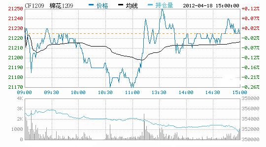 4月18日,鄭棉CF1209合約高開,早盤在多頭平倉壓制下走低,午后在空頭回補(bǔ)支撐下回升,日線形成高開陰線星,主要合約成交量萎縮,持倉量減少。CF1205合約日成交3096手,日減倉1800手,終盤持倉量46014手;CF1209合約日成交83328手,日減倉4484手,終盤持倉量351860手。基本面情況:據(jù)了解,多數(shù)棉企已無庫存,即使有庫存也普遍在100噸以下,并且質(zhì)量不算太好,雖有讓利現(xiàn)象但銷售難度依然不小。棉副方面,部分棉籽報(bào)價(jià)小幅下滑;棉油、粕行情高位松動(dòng);棉短絨行情小幅波動(dòng),成交變化不大。下游方面,國(guó)內(nèi)各地棉紗市場(chǎng)多穩(wěn),但總體而言出貨仍較不易,紗線廠家?guī)齑鏉u增。