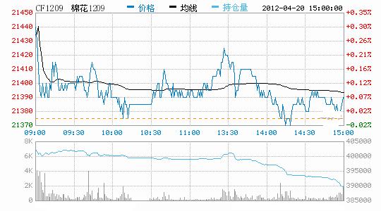 4月20日,鄭棉CF1209合約低開(kāi),早盤(pán)在平倉(cāng)盤(pán)打壓下回落,盤(pán)中區(qū)間震蕩,日線形成小陰線,主要合約成交量萎縮,持倉(cāng)量減少。CF1205合約日成交6556手,日減倉(cāng)3626手,終盤(pán)持倉(cāng)量39930手;CF1209合約日成交118316手,日減倉(cāng)13518手,終盤(pán)持倉(cāng)量389968手?;久媲闆r:皮棉價(jià)格仍延續(xù)穩(wěn)中有跌態(tài)勢(shì),市場(chǎng)上供給量并不大,但需求情況仍無(wú)改善,制約行情。今日電子盤(pán)棉花行情表現(xiàn)轉(zhuǎn)好,盤(pán)面高開(kāi)上行為主,此次反彈能否持續(xù)將決定其能否對(duì)低迷許久的棉市形成刺激。下游紡織銷(xiāo)售情況仍一般,采購(gòu)需求變化不大。市場(chǎng)上籽棉收購(gòu)基本停止,棉籽貨少價(jià)穩(wěn),不過(guò)外圍油脂粕類(lèi)持續(xù)走低,棉油、粕行情面臨壓力,或?qū)⒂绊懨拮迅呶贿\(yùn)行。目前各地春播如火如荼,新疆播種進(jìn)度較快,83、106、121團(tuán)基本完成春播工作,已有部分棉苗出土顯行。