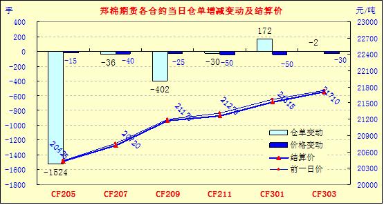 4月25日,鄭棉CF1209合約平開,早盤在平倉盤打壓下走低,隨后多頭買盤支撐期價回穩(wěn)盤整,午后一度在多頭增倉買盤推動下上沖,尾盤受平倉盤壓制下滑,日線形成陽線星,主要合約成交量萎縮,持倉量減少。CF1205合約日成交1926手,日減倉916手,終盤持倉量33142手;CF1209合約日成交59388手,日減倉402手,終盤持倉量369526手?;久媲闆r:受籽棉資源逐漸減少制約,市面上質(zhì)量較好的資源少之又少。大多數(shù)企業(yè)已經(jīng)停止加工,部分地區(qū)個別廠家以加工低等級皮棉為主,保持正常收購,由于高等級棉較難收購,并且加工虧損,反而不如加工低等級花尚勉強(qiáng)有利。今日中東部棉區(qū)普降中雨,這將緩解土壤干燥,有利于播種。據(jù)調(diào)研了解,河北主產(chǎn)棉區(qū)面積減幅不大,河南面積下滑明顯,安徽、湖北主要傳統(tǒng)種植區(qū)域面積穩(wěn)中下降。下游方面,近期全棉紗市場整體延續(xù)清淡弱勢格局,市場觀望為主,成交不多。